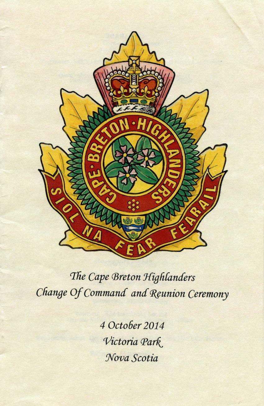 This section contains one 6 page program for the Change of Command of the Cape Breton Highlanders at Victoria Park, Sydney, NS, October 4, 2014.