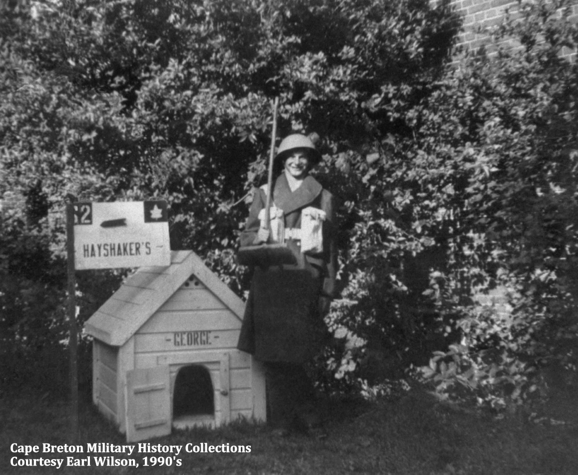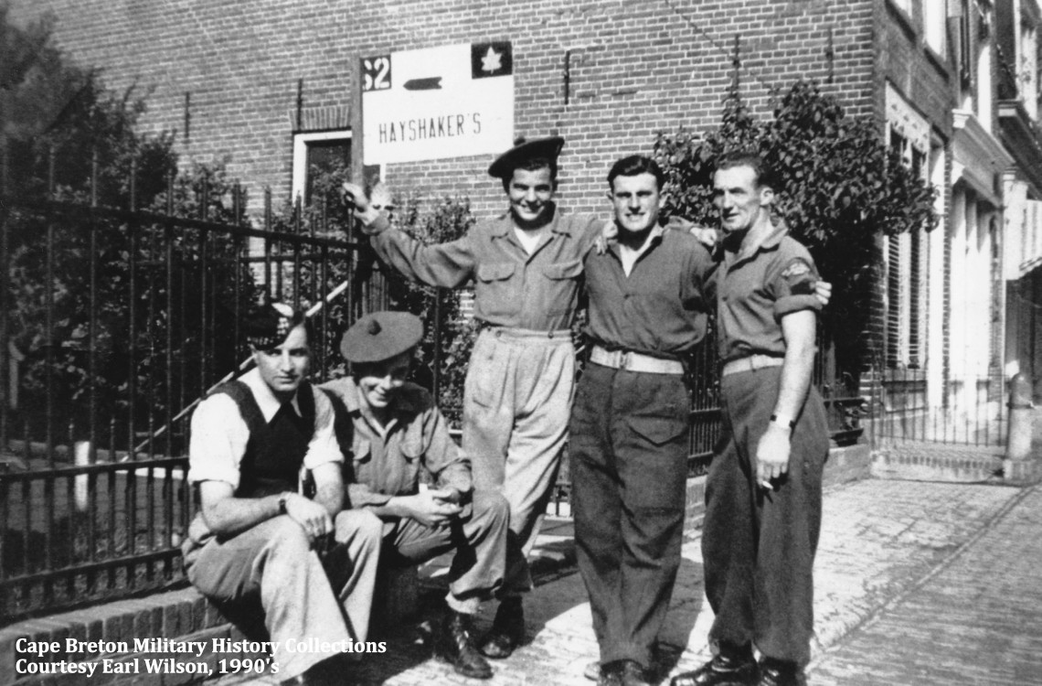Note the sign in the background. "A" Company were known as the Hayshakers. The 62 was the tactical number for the Cape Breton Highlanders. The sign is probably pointing to the location of the company headquarters.